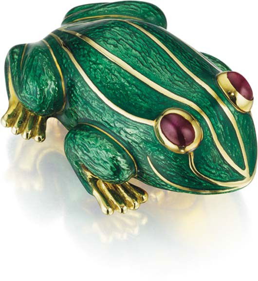 Brooch - 18 kt. Yellow gold, Hammerman Brothers 18K Yellow Gold Frog Brooch with Large CoralEastern European Art Gallery Inc$5006 hrs Left