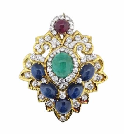 David Webb 18K Yellow Gold Brooch with Emerald Rubies Sapphires DiamondsBidhaus4.2(840)$10015 hrs Left