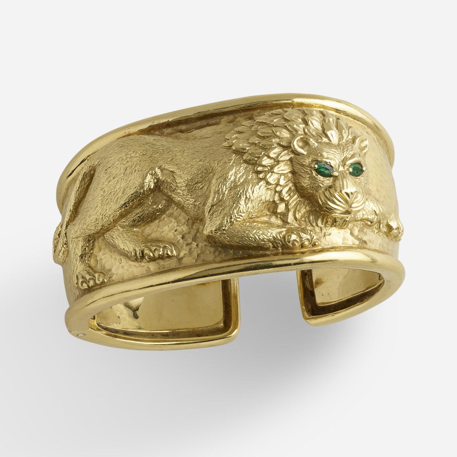 David Webb 18K Yellow Gold Repousse Leopard Bracelet with Emerald EyesBidhaus4.2(838)$100712 Lots Away