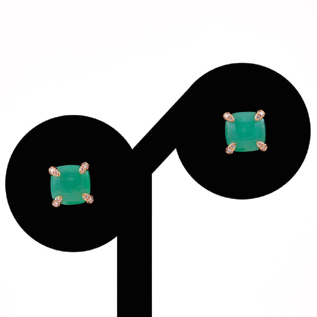 14k Gold 6.00ct Emerald 0.40ct Diamond Earrings