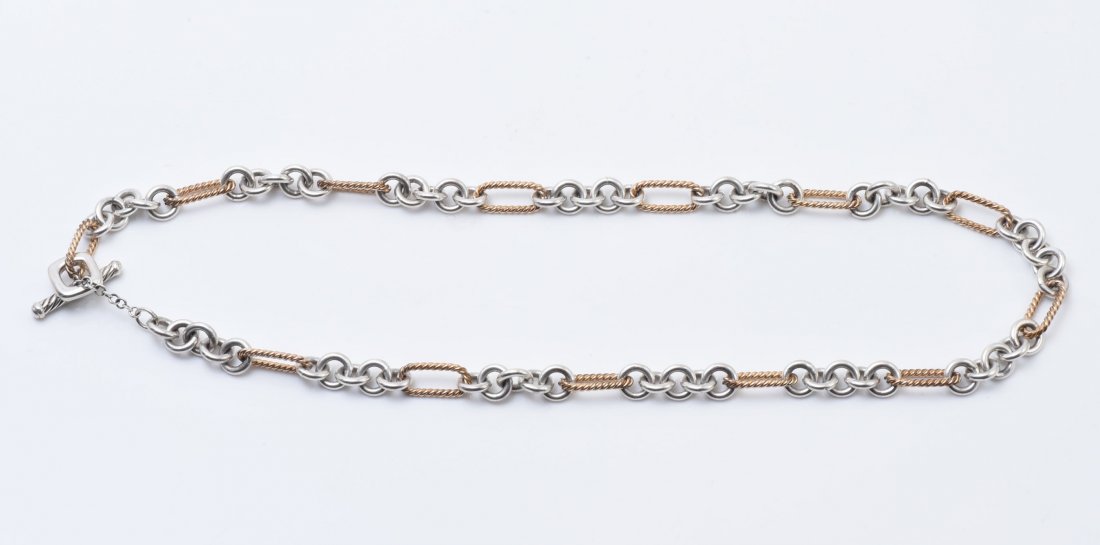 David Yurman Sterling Silver 18k Gold Collar Necklace with Oval Links