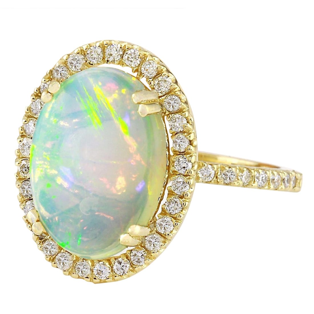 14k Yellow Gold 4.00ct Opal 1.00ct Diamond Ring