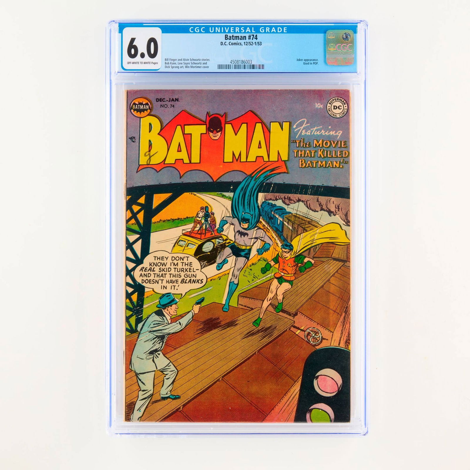 SoldD.C. Comics Batman #73 CGC 5.0D.C. Comics Batman #73 CGC 5.0 USA, 1952 This issue features a Joker and Vicki Vale appearance and iconic Joker cover by Dick Sprang and Charles Paris. David Vern story with art by Bob Kane, Lew SayreSee Sold Price