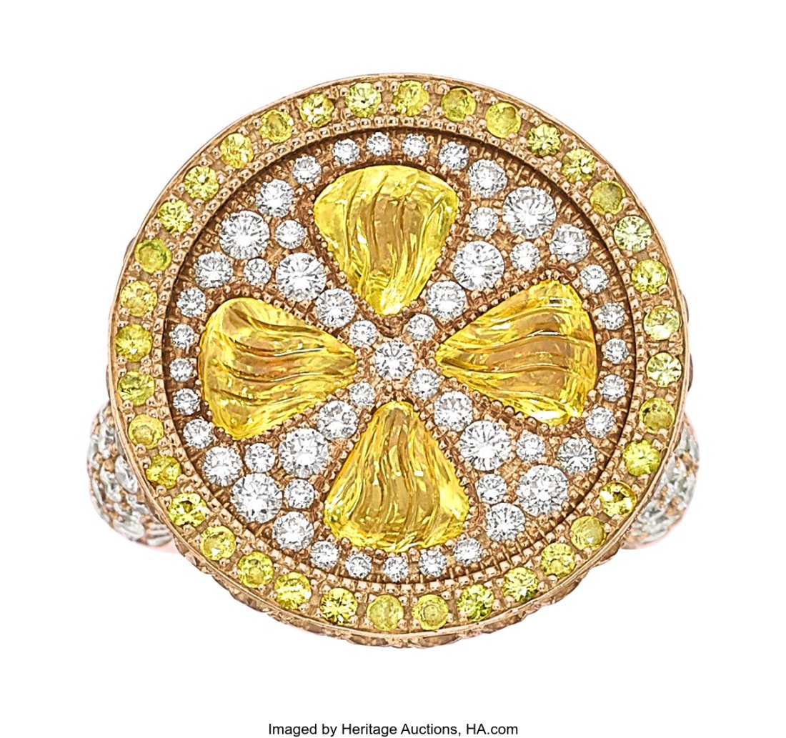 Platinum and 18K Gold Three Stone Ring with 8.7ct Fancy Intense Yellow DiamondBidhaus4.2(840)$1002 days Left