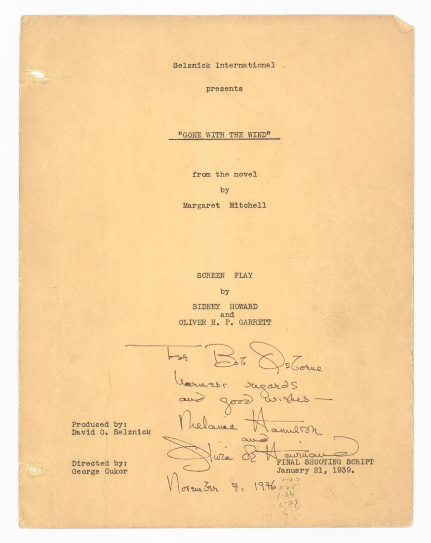 De Havilland Signed Gone W/ Wind Script Cover Page Only