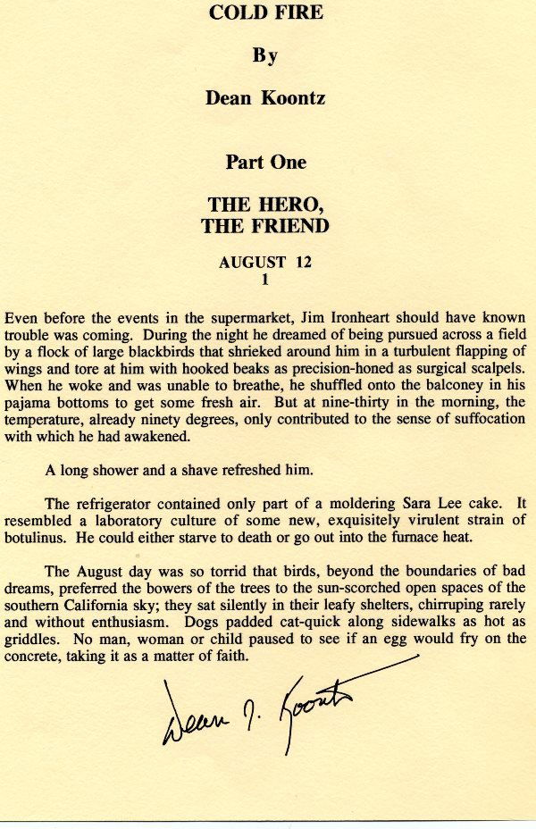 Dean Koontz Signed Typescript of Cold Fire UACC