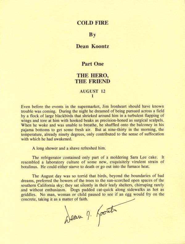 Dean Koontz Signed Typescript of Cold Fire