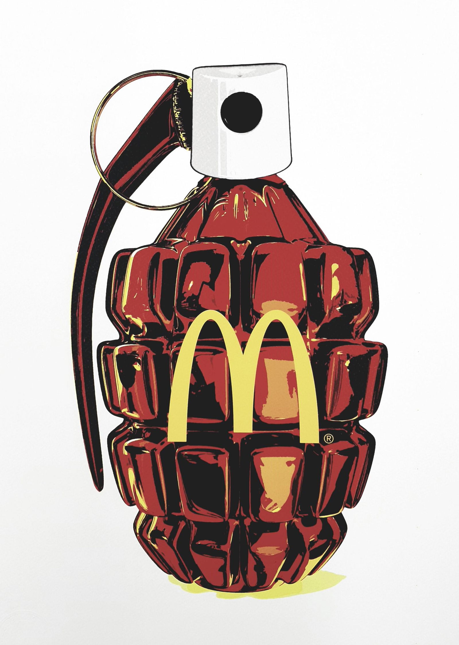 SoldDEATH NYC - 'Coca-Cola Grenade' A/P Signed LithographDeath NYC's 'Coca-Cola Grenade' (red) Artist's Proof lithograph. Printed on fine 300 GSM art paper, hand-signed and dated "2018" lower left. Noted "A/P" in pencil lower right. Measures 12 1/2" x 17 3/See Sold Price
