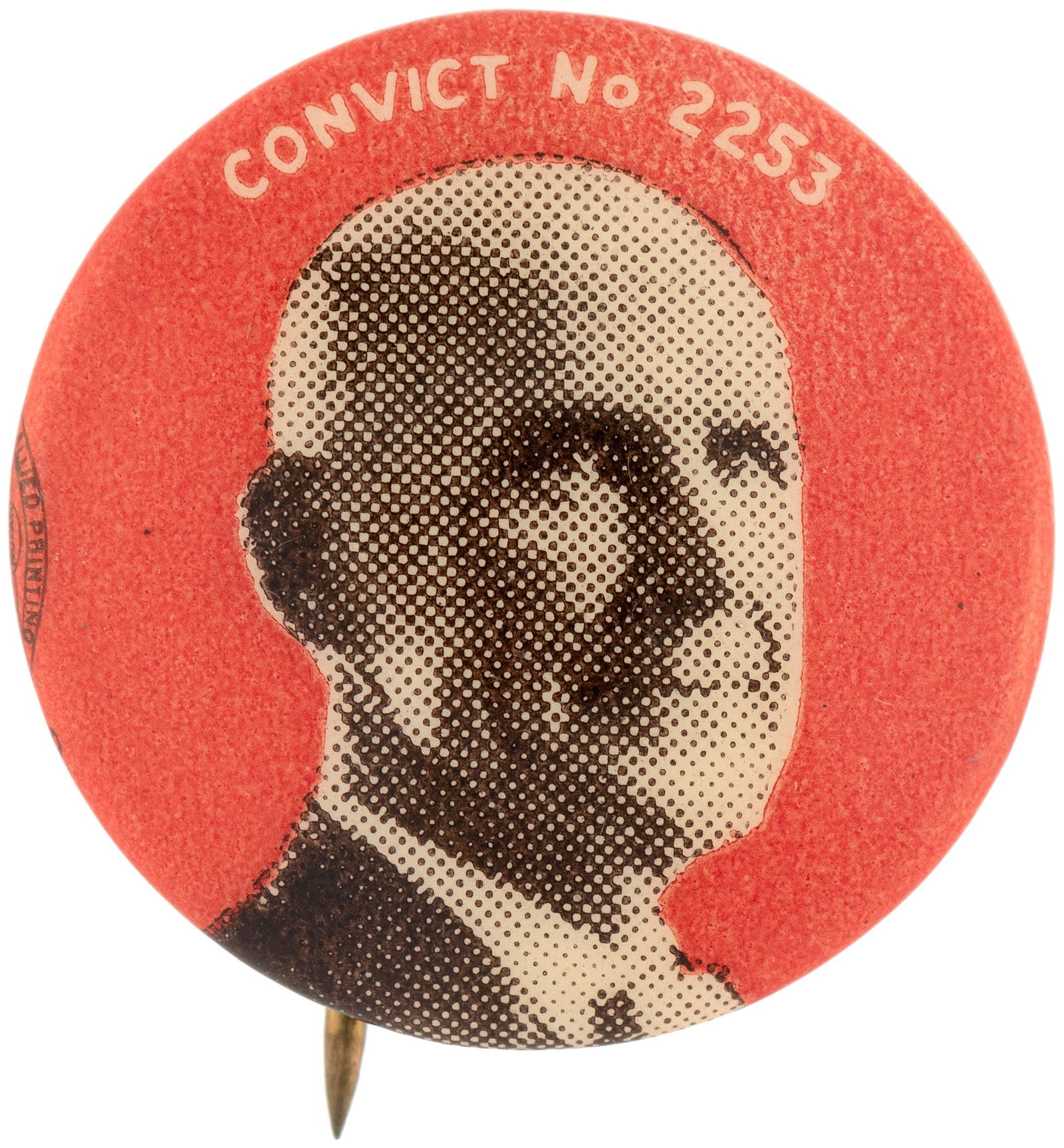 DEBS "CONVICT NO. 2253" RARE 1920 PORTRAIT BUTTON.