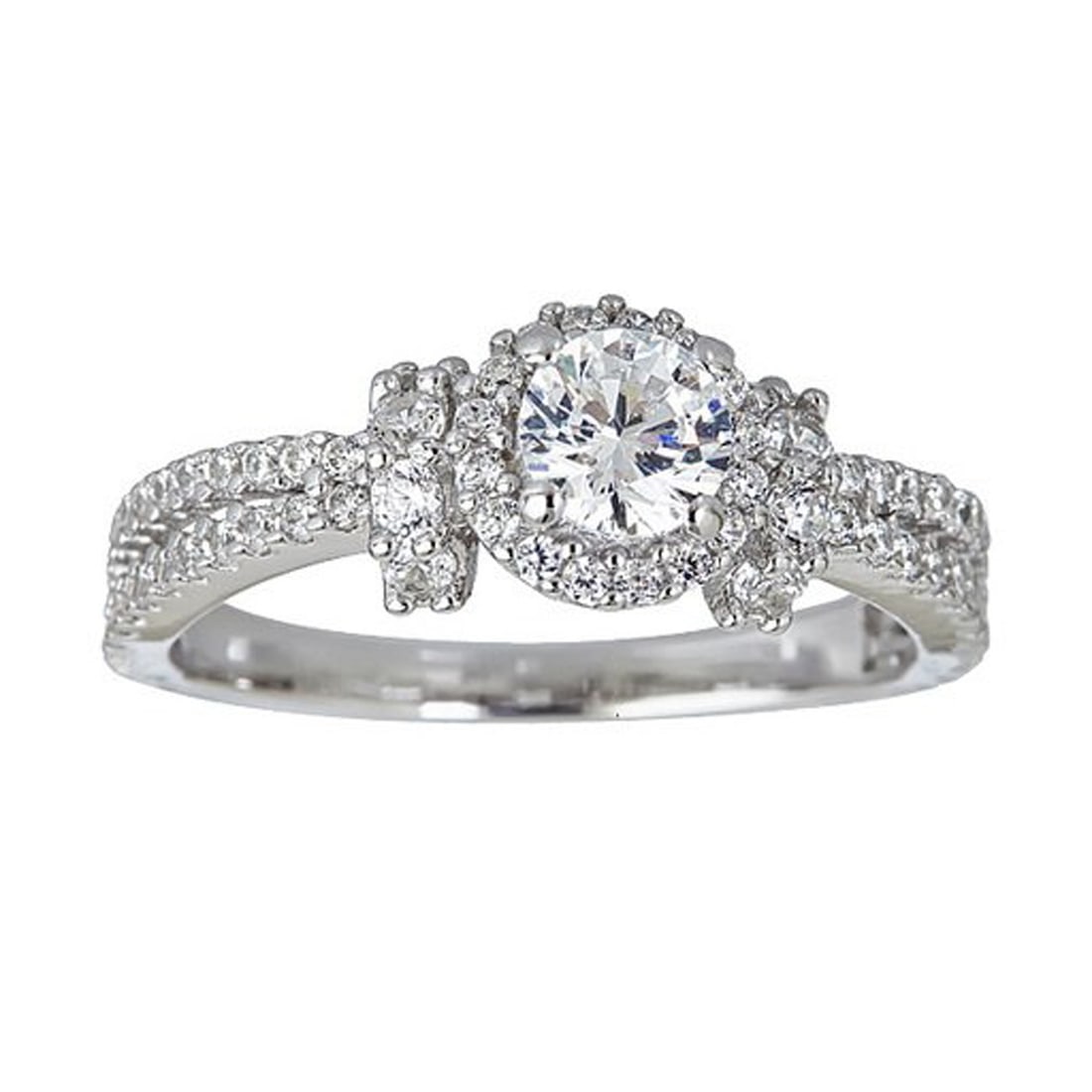Decadence Sterling SIlver 5mm Round Cut Split Shank Pave Ring Size 7