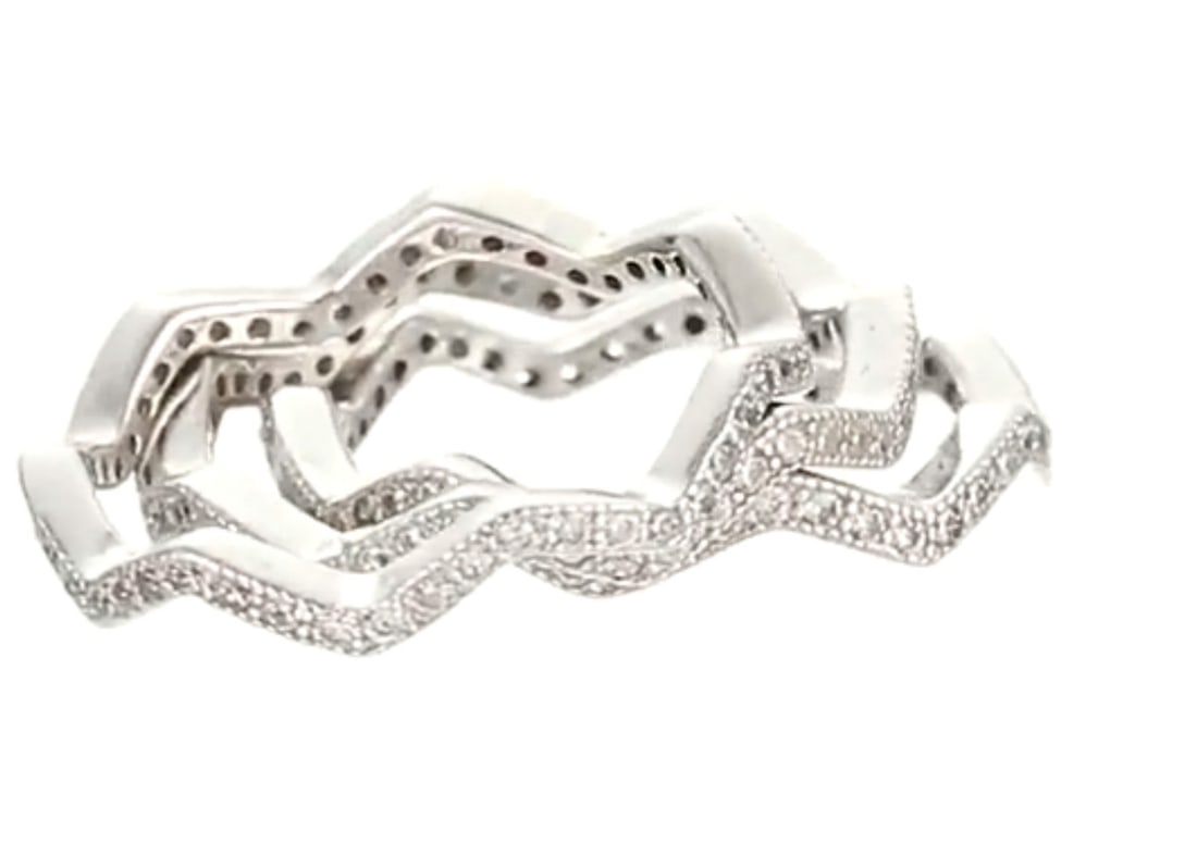 Decadence Sterling SIlver rhodium Zigzag Stack Ring Size 8