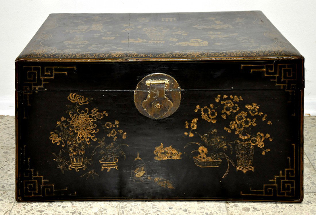 Deckeltruhe Mit Goldlackmalerei.