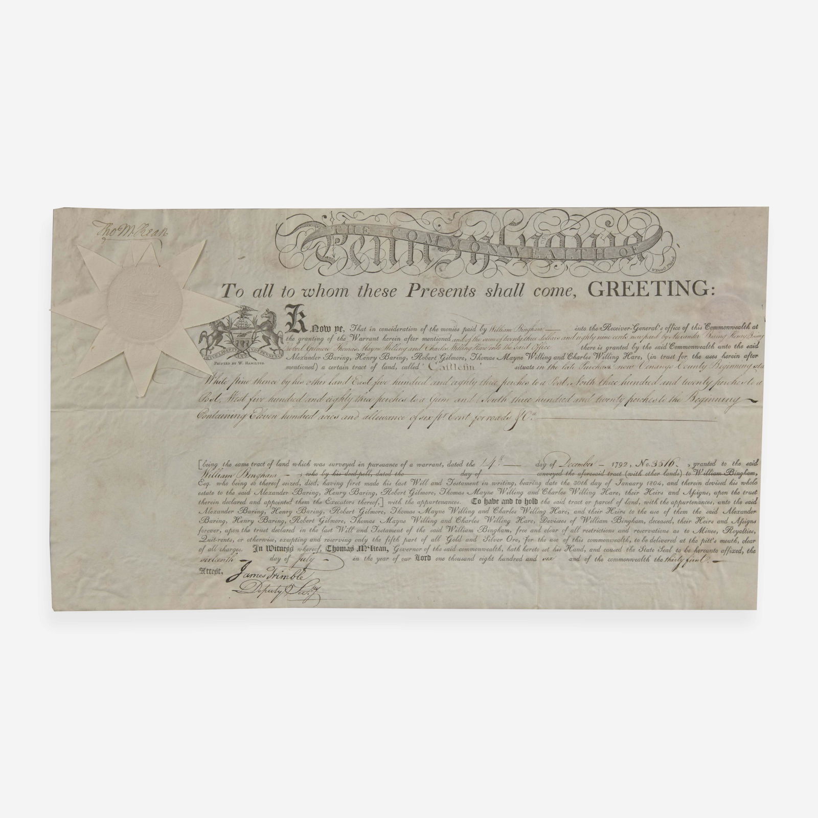 1796 English Manuscript Warrant of Attorney London1801 New York Mayors Court Manuscript Bail1799 Manuscript New York Bail Notice1784 Rhode Island Governor Arthur Fenner Signed DocumentMar 15, 20261780 Revolutionary War Army DocumentMar 15, 2026William Penn Document Signed. One partially prin2 days LeftWilliam Thornton 1817 Washington DC Capital Architect Signed Manuscript Document Richard Bland LeeMar 29, 20261767 Philadelphia Land Bond Mifflin/Wallis SignatureMar 15, 20261728 Colonial Land Promissory Note Early American ManuscriptMar 15, 20261794 Connecticut Recorded Land DeedMar 15, 2026Reproduction of the Declaration of IndependenceMar 05, 20261781 William Bradford Revolutionary War Pennsylvania DocumentMar 15, 2026George Washington 1783 Signed Revolutionary War Discharge Document Beckett COA754 Lots AwayGeorge Washington 1783 Signed Revolutionary War Discharge Document Beckett COAMar 08, 20261797 British Vellum Lease IndentureMar 15, 2026Benjamin Franklin Signed Land Grant. One partial2 days Left