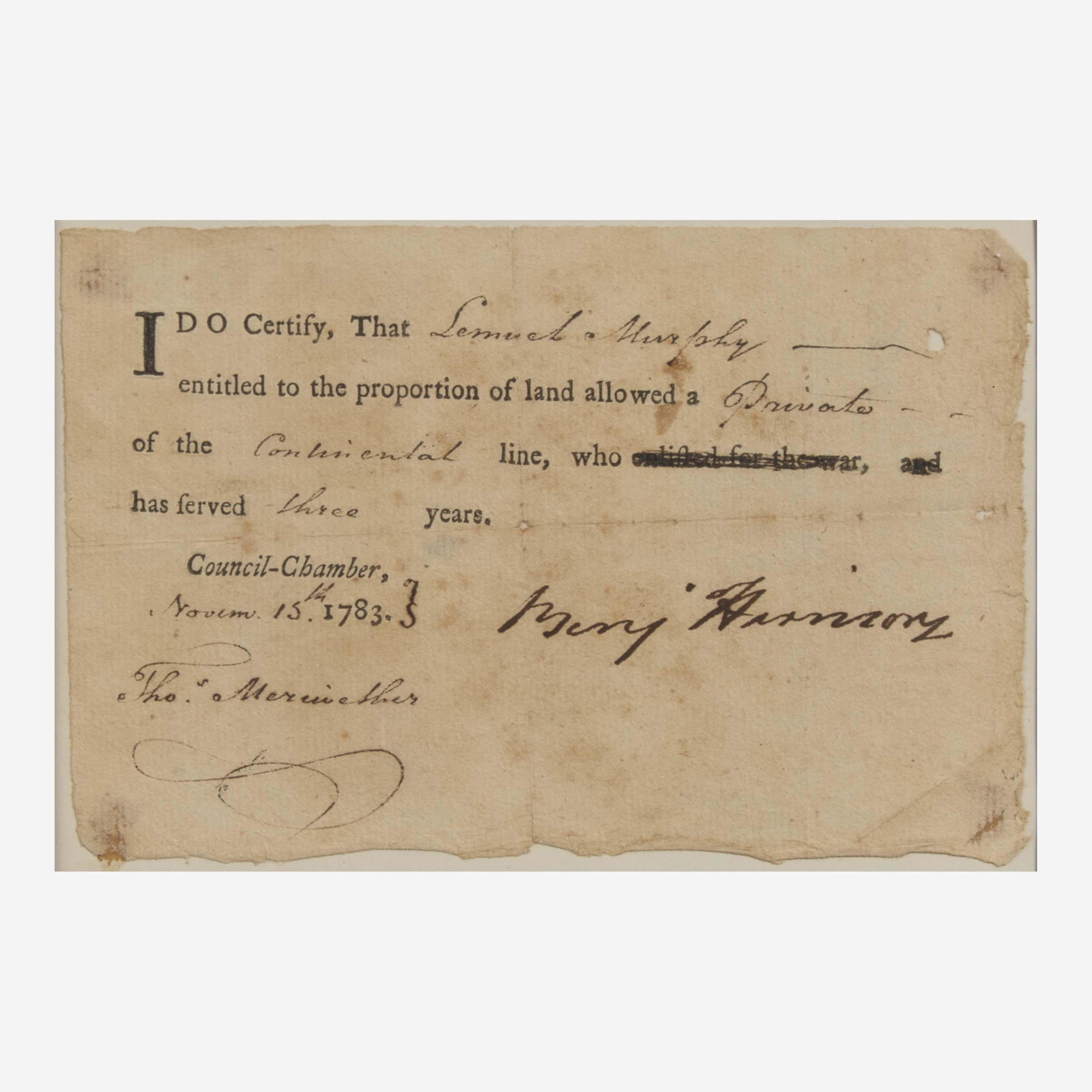 [Declaration of Independence] [Virginia] Harrison, Benjamin Partially-Printed Document, signed