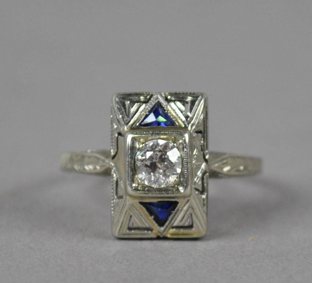 Art Deco 18K White Gold 2.00ct Diamond and Sapphire Ring, White gold - 2.20ct. tw. DiamondEastern European Art Gallery Inc$4,8004 days Left