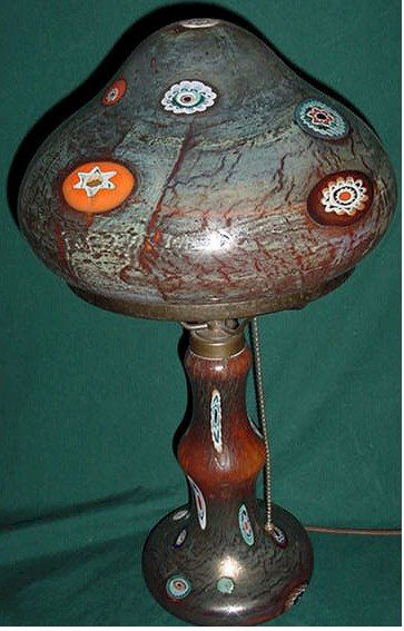 SoldItalian Millefiore Art Glass Lamp,Italian Millefiore Art Glass Lamp, mushroom shape alternation floral decor, 10" diameter, 18" tall.See Sold Price