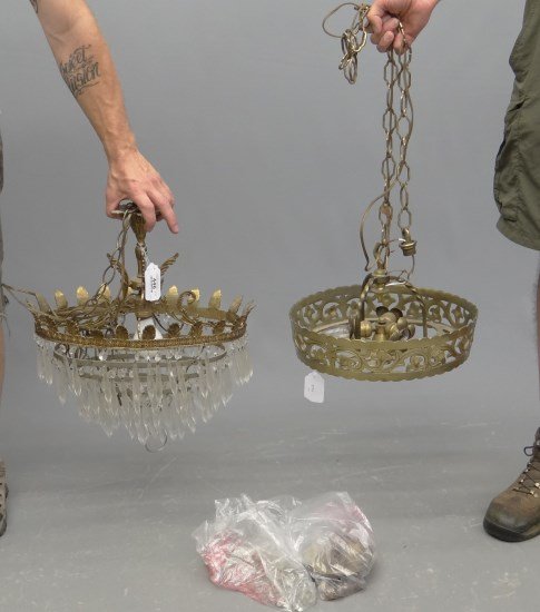 SoldPair of Decorative ChandeliersPair of decorative brass and glass chandeliers. Approx. 23" D., 16" Ht..See Sold Price