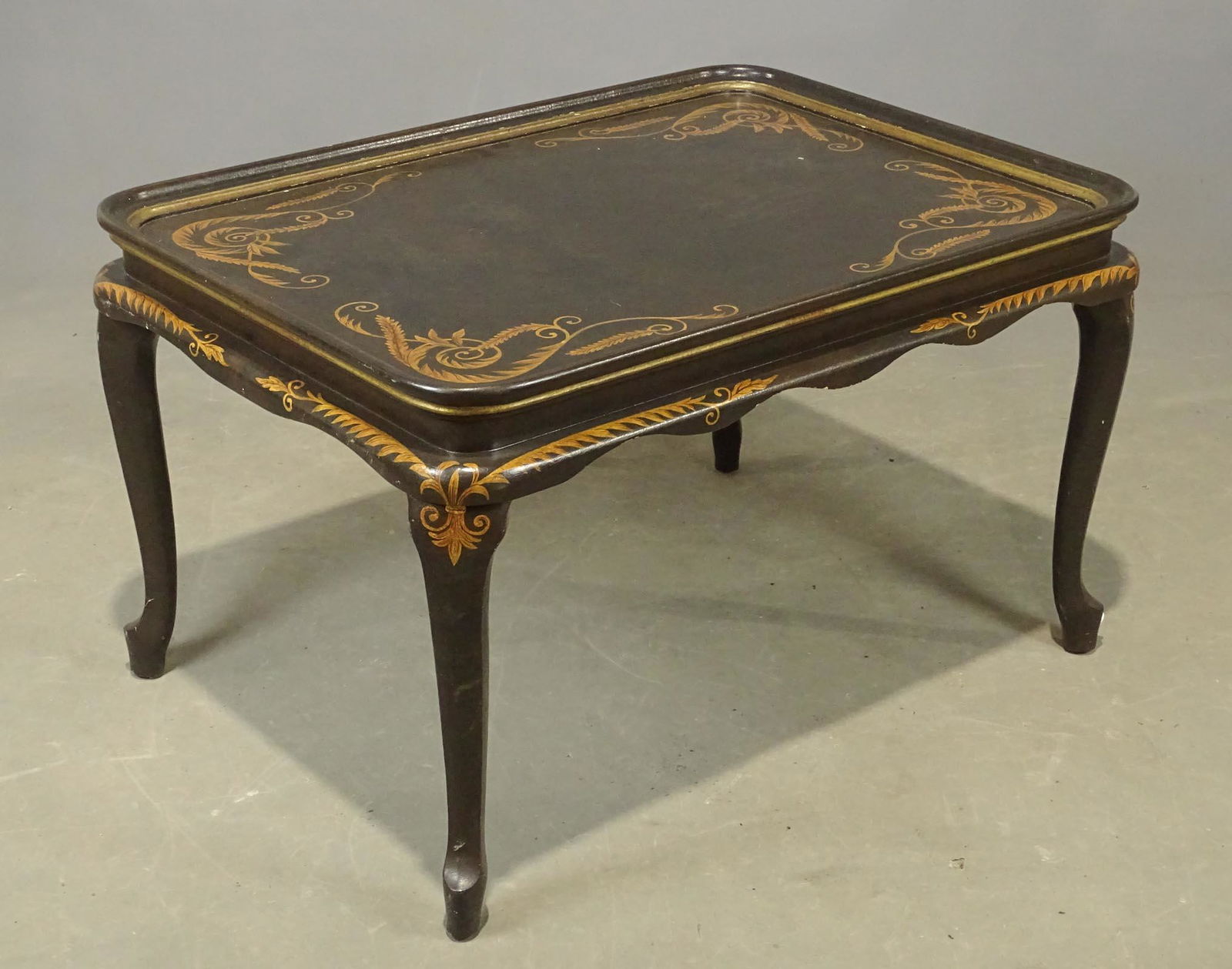 Jean Royere style French Industrial Modernist Iron Wood Coffee Table. Decorative iron grill form 3 SJean Royere style French Industrial Modernist Iron Wood Coffee Table. Decorative iron grill form 3 Sided Base supports Pine Top. Iron base has intentionally worn painted finish. Dimensions: Height: 20