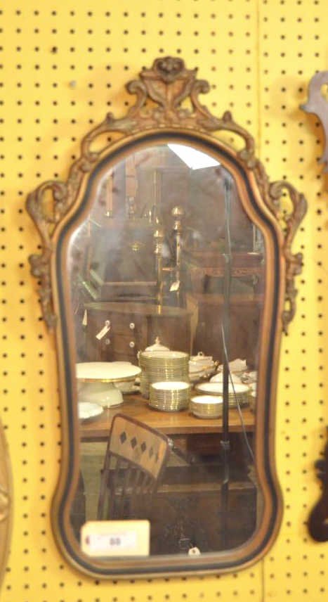 SoldFancy Gold Painted Wall Mirror. with Decorative Top CreFancy Gold Painted Wall Mirror. with Decorative Top Crest.-- Dimensions: H: 38 inches: W: 20 inches ---See Sold Price