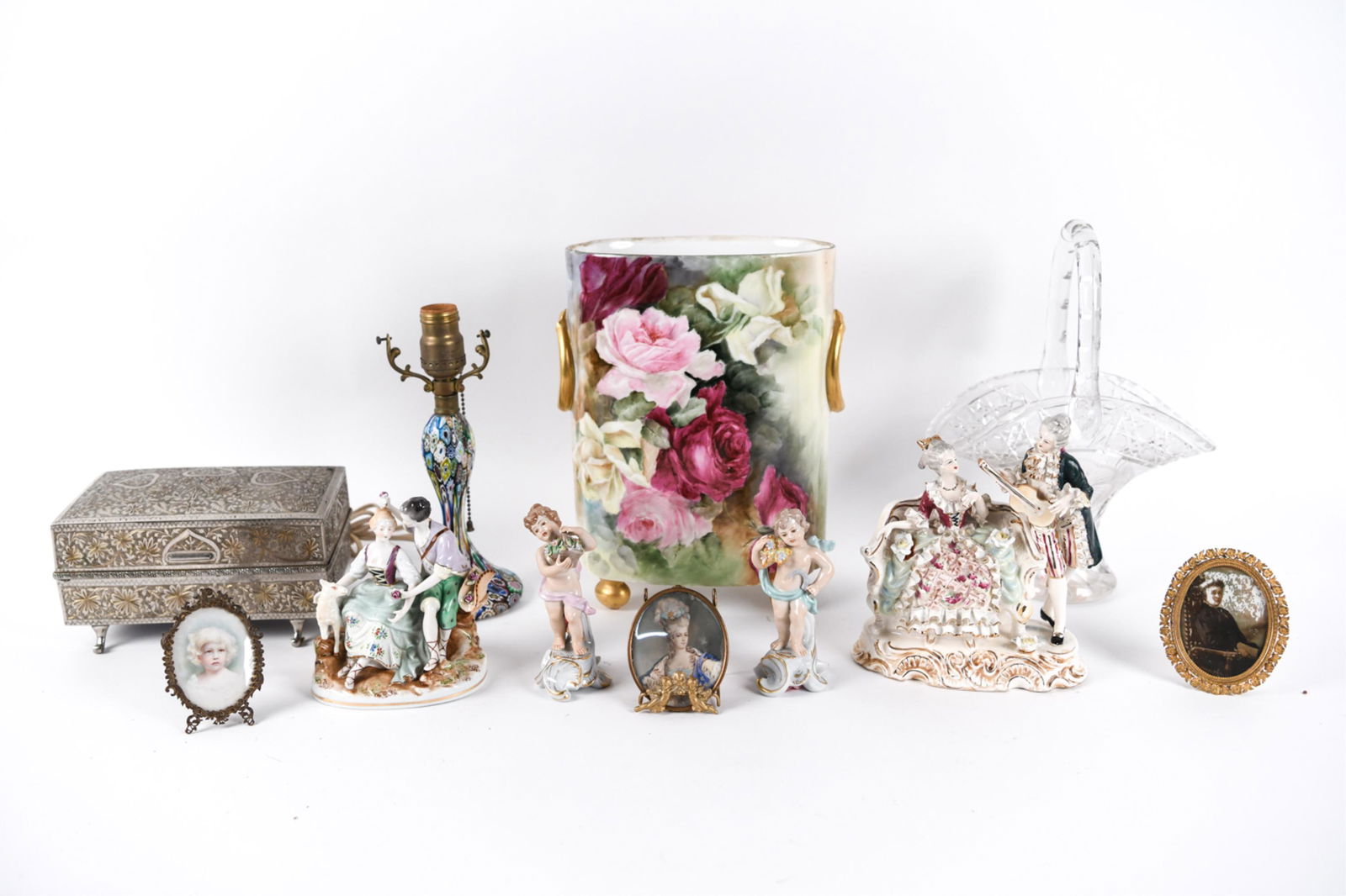 A lot of four various decorated porcelain figural groupsFeb 24, 2026Lot: Limoges, Crown Staffordshire, Stone Eggs, etc4 hrs LeftLot of Porcelain and Glass Pieces5 days LeftA composed lot of 11 variously marked porcelain figurinesFeb 24, 2026Lot of Assorted Nippon Vases, Bowls, & Pitchers.4 hrs LeftLot Asian Ceramic & Porcelain Items - Egg Box, Etc4 hrs LeftLot of 3 AS-IS Pieces of Porcelain5 days LeftA lot of six Chinese Qianjiang variously shaped and decorated porcelain objectsFeb 24, 2026A composed lot of seven variously marked and decorated German saxony style porcelain figurinesFeb 24, 2026A lot of three variously decorated cut crystal and opaline glass objectsFeb 24, 2026Lot of porcelain (4x)1268 Lots AwayLOT OF 10 MISCELANIOUS GLASS AND PORCELAIN VASESFeb 22, 2026(12) CHINESE ROSE MEDALLION PARCEL-GILT PORCELAIN TABLE ARTICLESFeb 22, 2026(32) JAPANESE PORCELAIN TEA SERVICE & CHINESE FAMILLE ROSE PLATESFeb 21, 2026Vintage Porcelain Trinket Boxes, Music Box, Trays1 day LeftGroup of Assorted Porcelain and Glass ItemsFeb 14, 2026