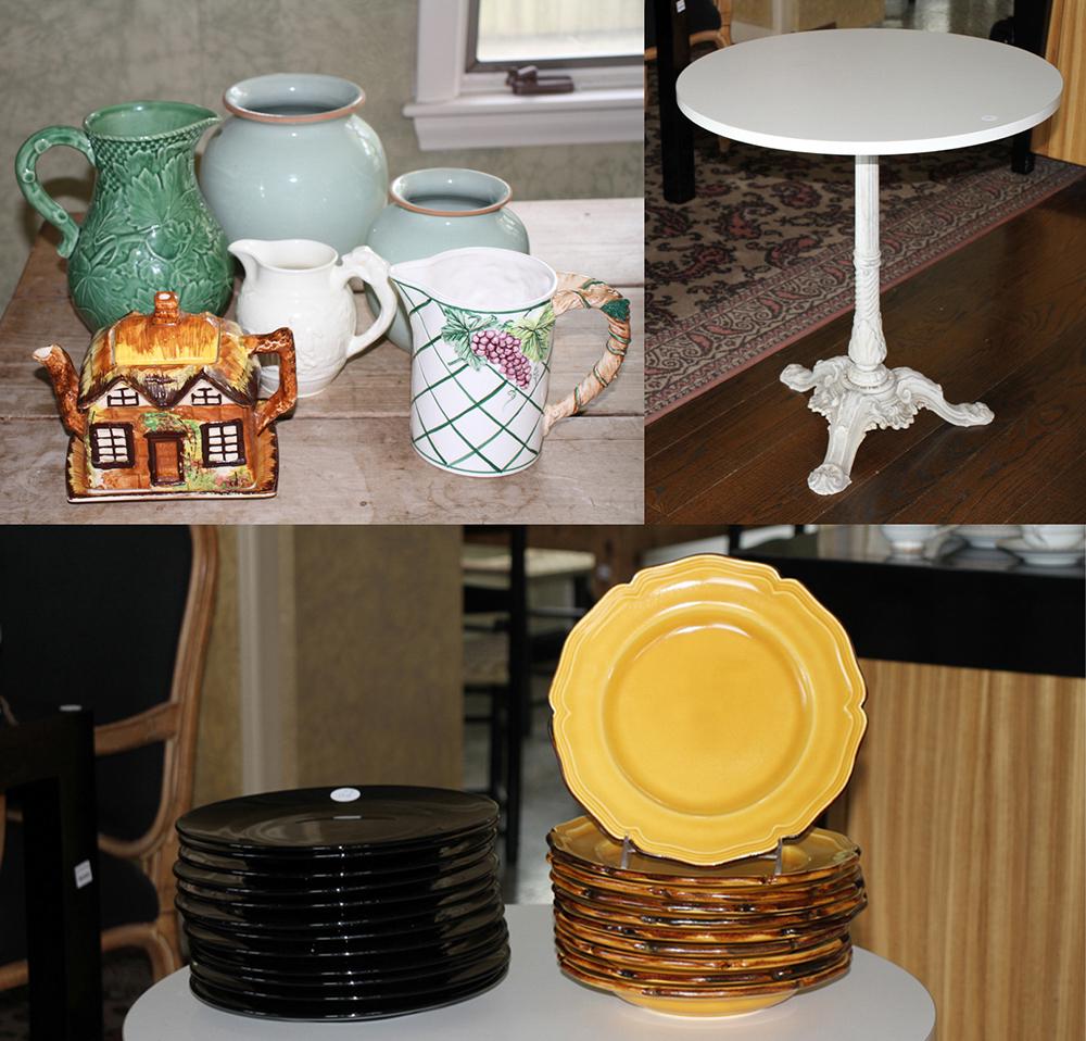 Decorative Items, Plates, and Cast Iron Table
