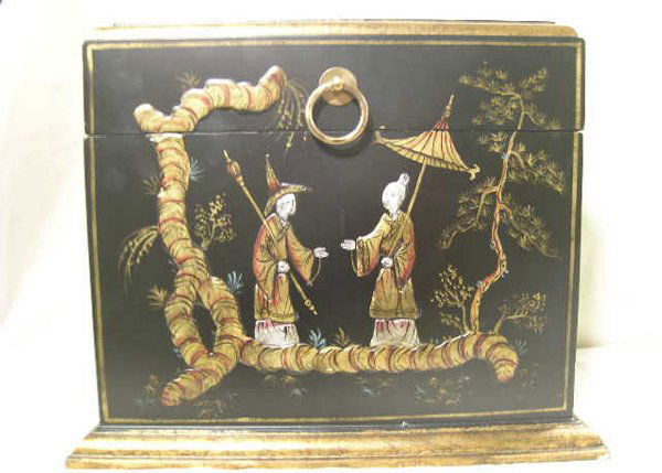 DECORATIVE ORIENTAL WOODEN DOCUMENT BOX