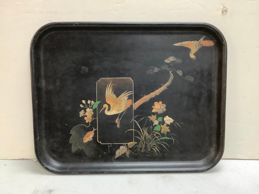 Large Victorian Style Silverplate Serving Tray with Engraved Floral Decoration and HandlesBridge's Auction$10