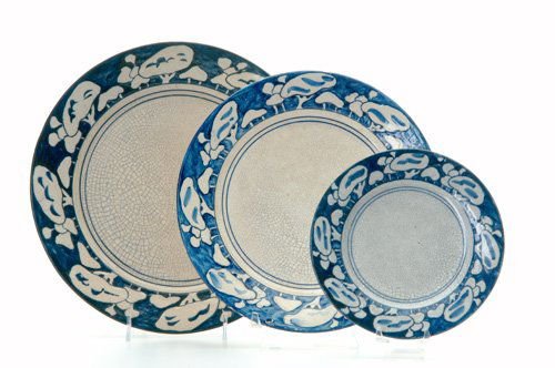 DEDHAM Three Crackleware plates in the Snow Tree d