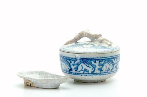 DEDHAM Two Crackleware items: covered dish in the
