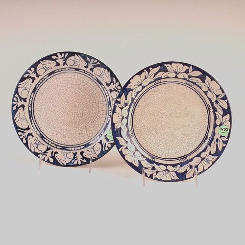 DEDHAM Two Crackleware plates, one in the clockwis