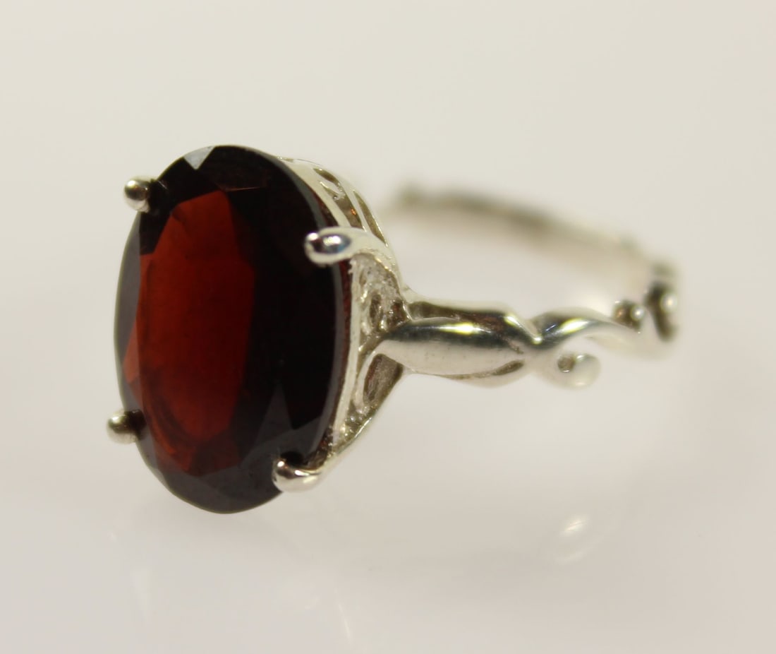 Deep Red Oval Garnet Ring in Sterling (925) Silver