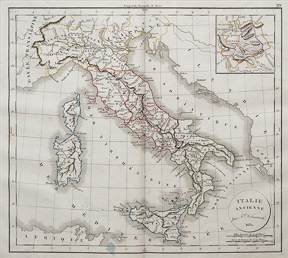 SoldDelamarche, Felix 1829 Map of Ancient Italy"Italie Antiquae Mappa Nova" Copper Engraved Map Published 1829, Paris for "Atlas de La Geographie..." by Felix Delamarche. Contemporary outline hand colour. Centre fold as published. Paper Size: 18.5See Sold Price
