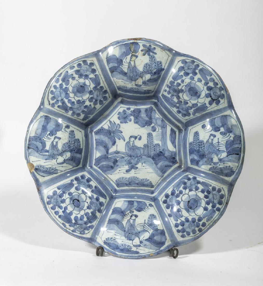 DELFT - Plat polylobé en faience décoré en caimaieu ble