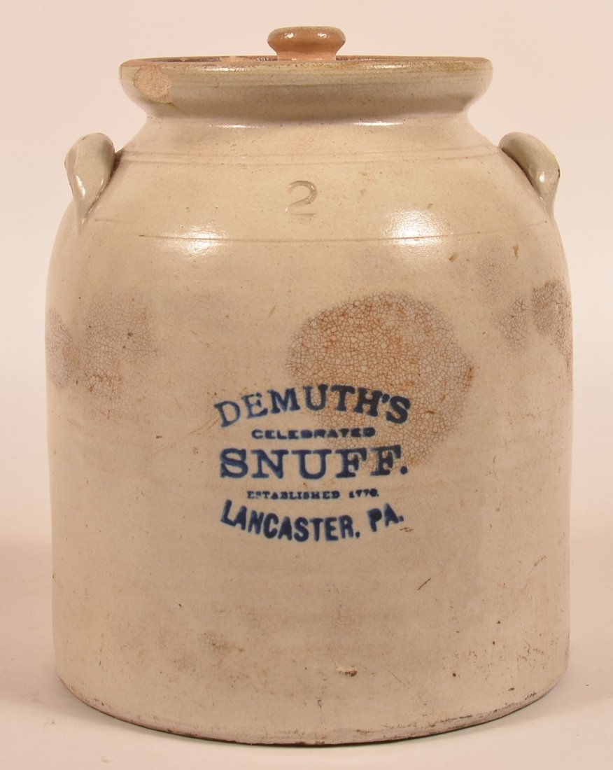 Demuth's Snuff Stoneware Two Gallon Crock.