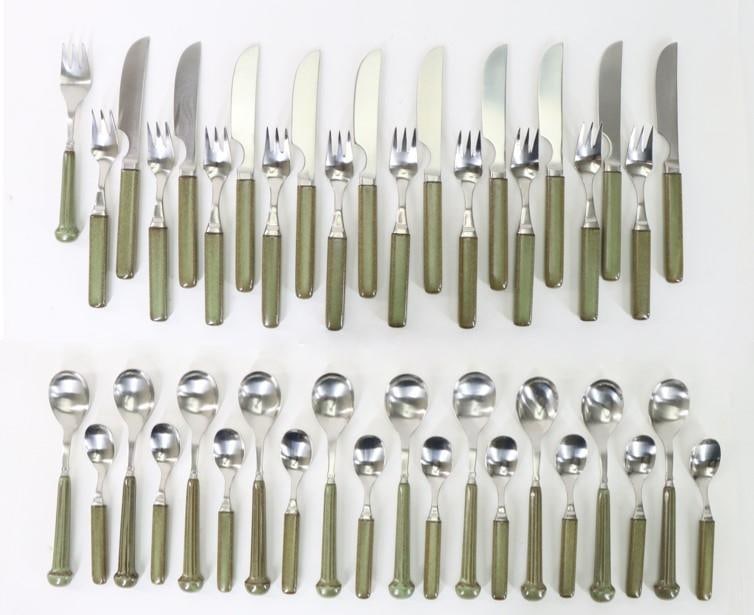 SoldArne Jacobsen Stainless Steel Flatware Set for A. Michelsen ( Denmark ) (73 pcs. Total ) found inArne Jacobsen Stainless Steel Flatware Set for A. Michelsen ( Denmark ) (73 pcs. Total ) found in local Hudson Valley estate, includes 13 dinner forks, 13 knives, 13 dessert forks, 13 larger spoons, 1See Sold Price