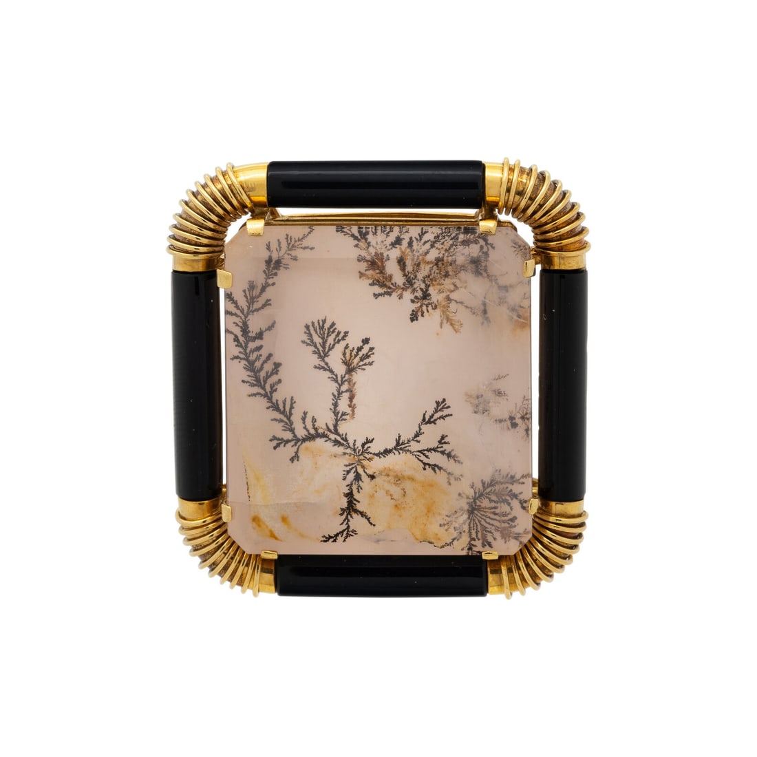 DENDRITIC QUARTZ AND ONYX BROOCH