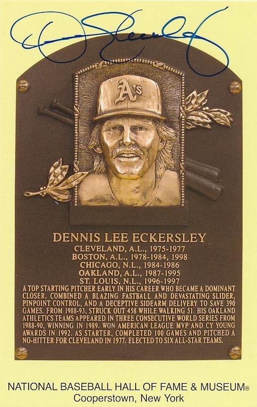 Dennis Eckersley Signed Hof Plaque Postcard Jsa