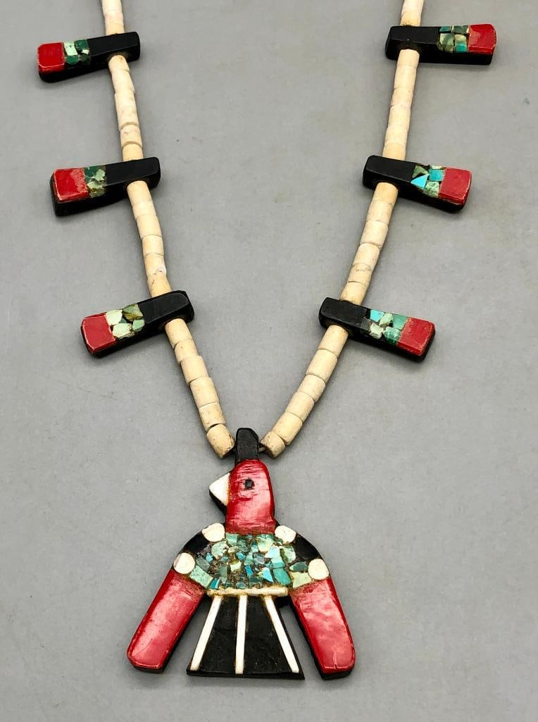 Lot of Two Shell & Mother of Pearl NecklacesFeb 19, 2026Cover-Up Creations Arizona color wooden beads leather strap necklace. Lot of 42 days LeftCover-Up Creations Arizona sand dollar wooden beads leather strap necklace. Lot of 32 days LeftCover-Up Creations Arizona sand dollar wooden beads leather strap necklace. Lot of 32 days LeftSanto Domingo Pueblo 1920's/1930's Depression Era Thunderbird NecklaceFeb 15, 2026VINTAGE NATIVE AMERICAN HEISHI SHELL NECKLACESFeb 15, 2026Santo Domingo Kingman Black Onyx Heishi Necklace Lupe Lovato2 days LeftVintage Zuni Inlay Necklace By Adeline BowannieFeb 11, 2026Dzi necklaceFeb 27, 2026Carved Spinach Jade 8 Immortals Necklace.Feb 07, 2026Native American Indian beaded necklace with thunderbirdFeb 08, 2026Attributed Pueblo, Spiny Oyster Tab necklace with Jacla, ca. 19956 days LeftVintage tribal seeds necklace and bracelet.2 days LeftVINTAGE BEAUTIFUL SANTO DOMINGO STERLING SILVER INLAY TURQUOISE NECKLACE2 days LeftElamite Carnelian Necklace with Large Silver Triangular PendantMar 03, 2026VINTAGE BEAUTIFUL SANTO DOMINGO STERLING SILVER INLAY TURQUOISE NECKLACEMar 01, 2026