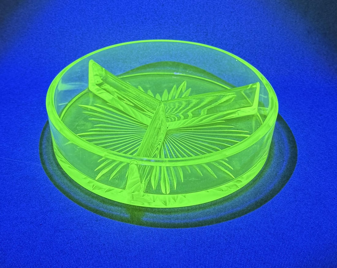 Depression Vaseline Uranium Glass Divided Dish
