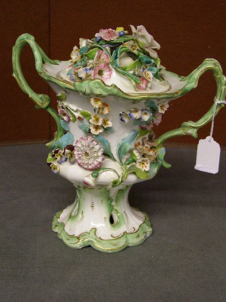 Derby style two handled urn with applied