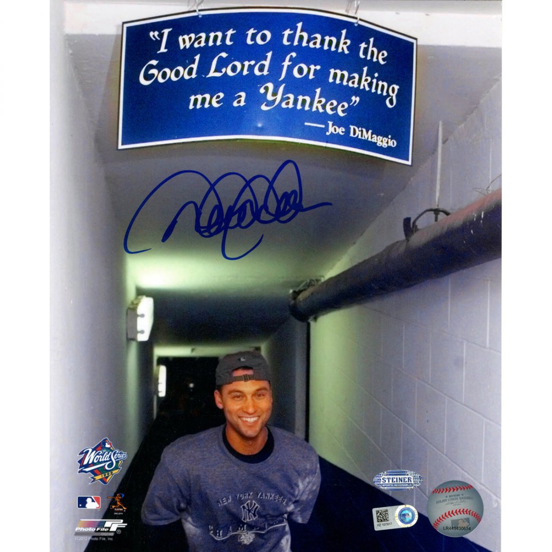 Derek Jeter Signed Standing Under Dimaggio Sign After 1