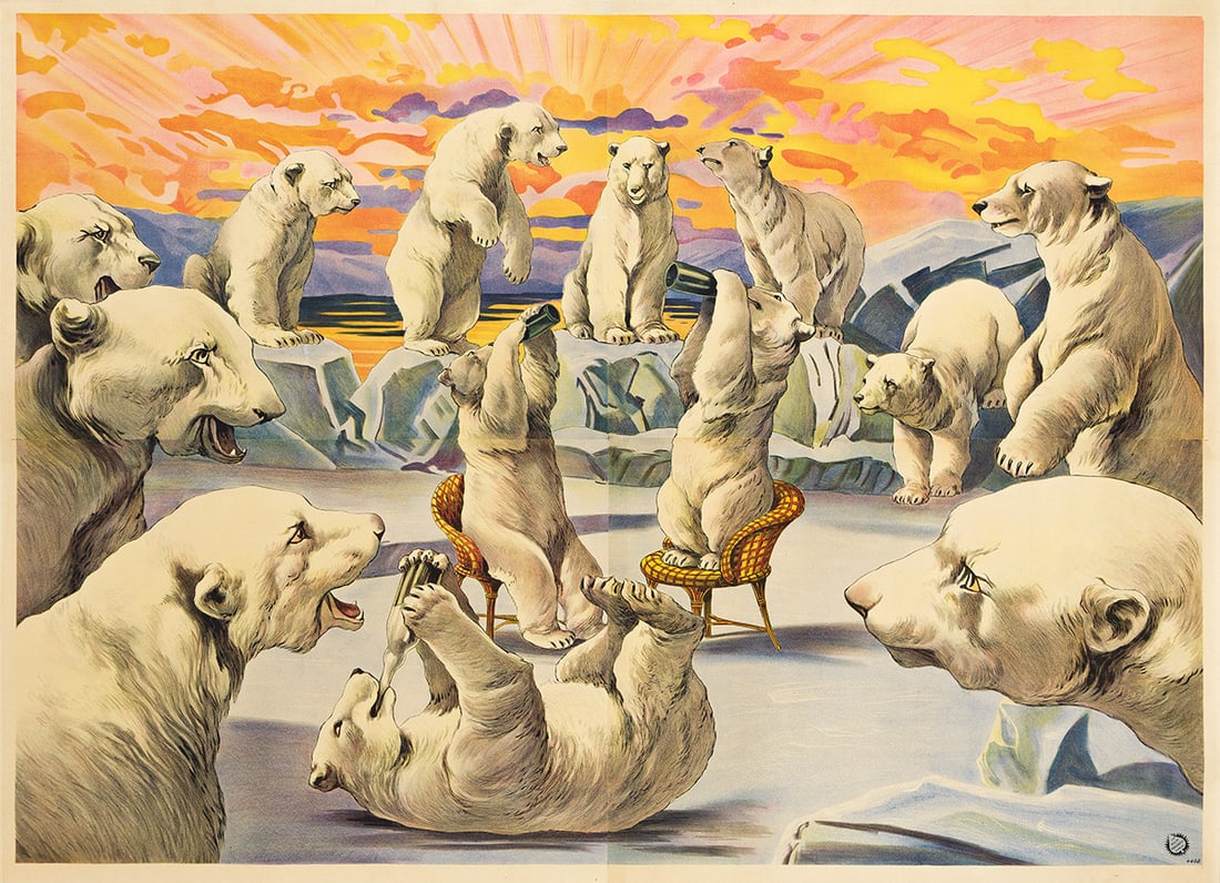 DESIGNER UNKNOWN [POLAR BEARS / CIRCUS]. Circa 1910.