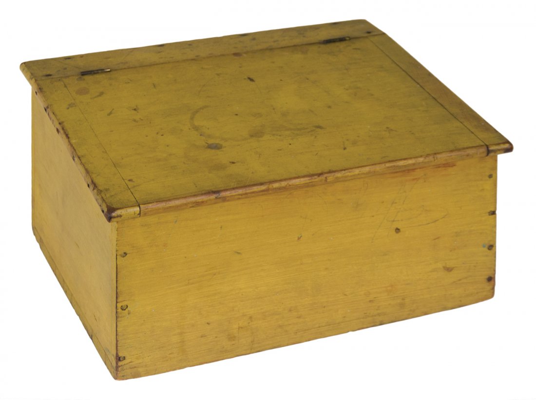 DESK BOX Pine, original chrome yellow painted finish,