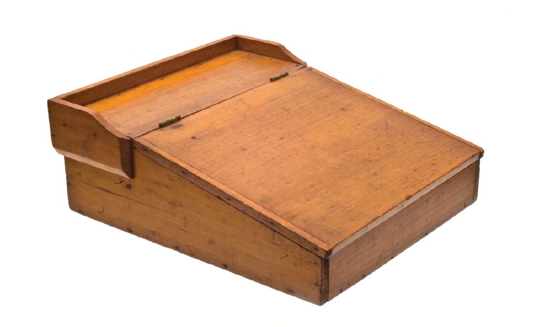 DESK BOX Pine, varnish finish, slanted breadboard lid,