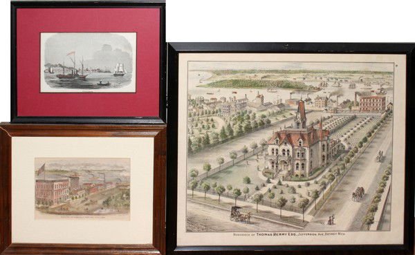 DETROIT VIEWS HAND COLORED PRINTS, THREE