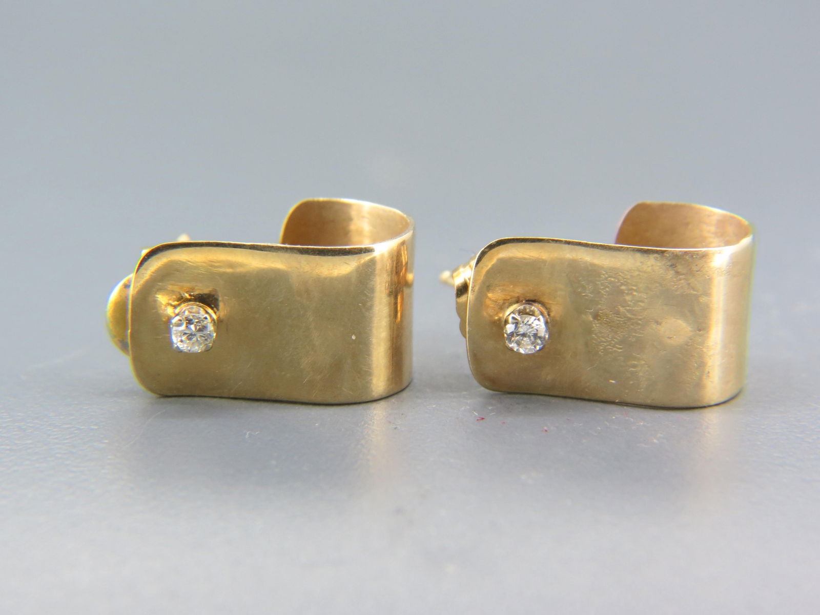 SoldDiamond & 14k Gold EarringsPair of 14k yellow gold and diamond post earrings. Diamonds: Approx. 1+ ct. Overall: 9.9 dwt.See Sold Price