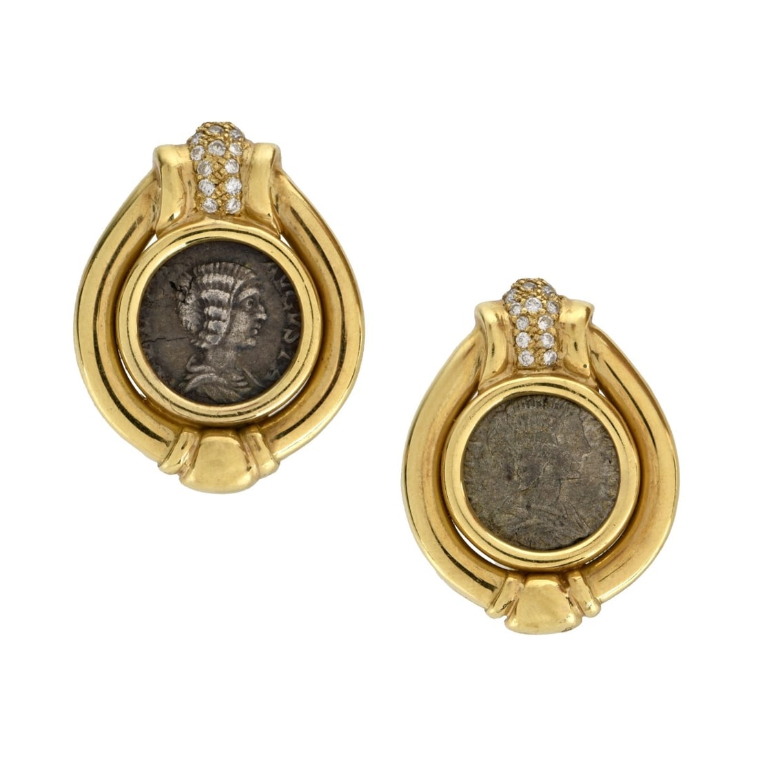 Diamond, 18K and Coin Earrings