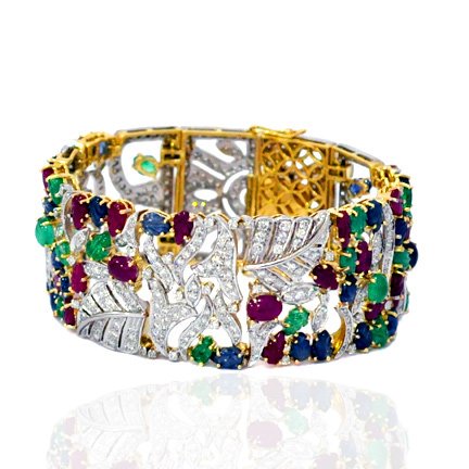 RUBY SAPPHIRE EMERALD BRACELET WITH DIAMONDS 14K YELLOW GOLD BAR LINK 10.35CTModern Jewelry4.5(204)See Sold PriceJul 13, 2025