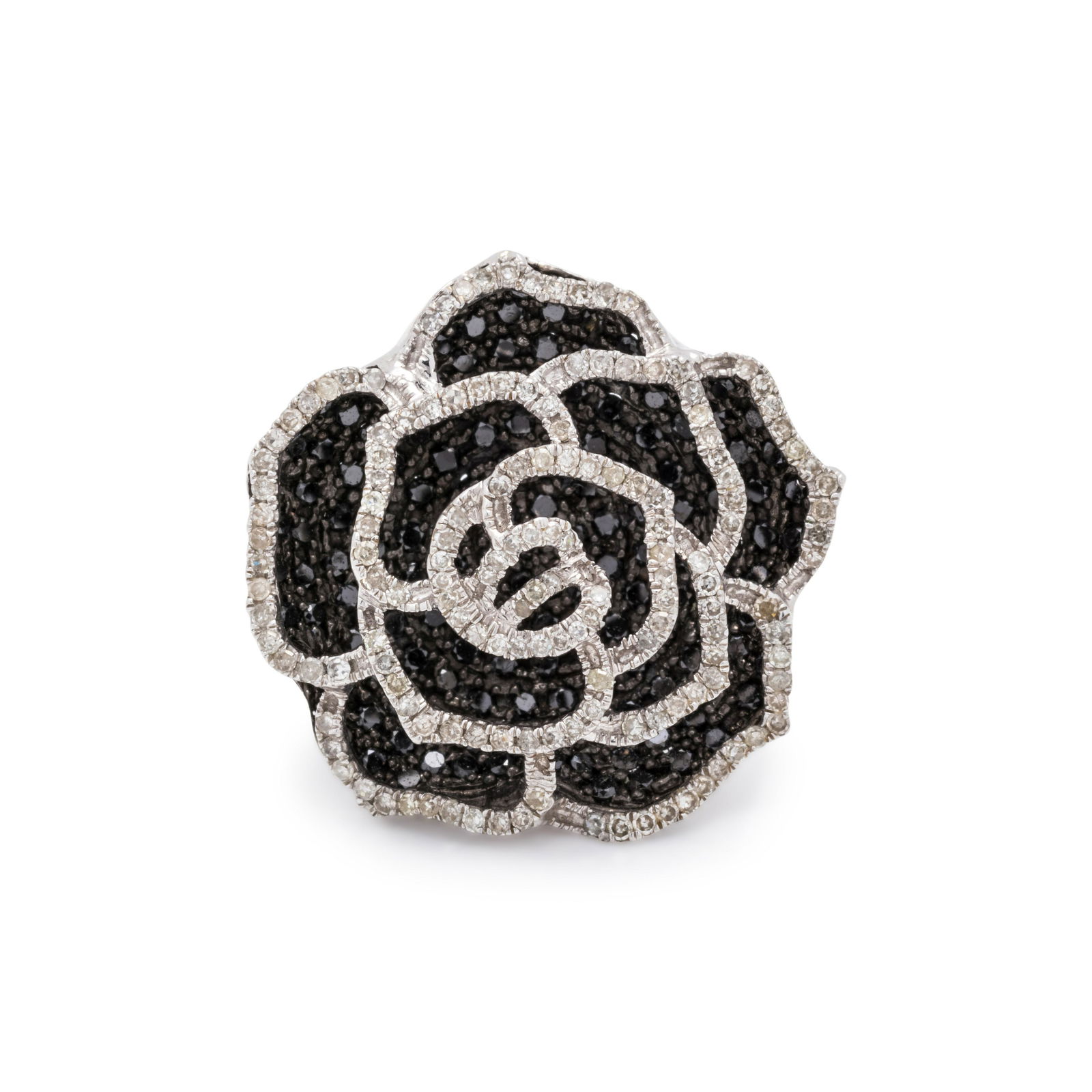 DIAMOND AND BLACK DIAMOND ROSE RING