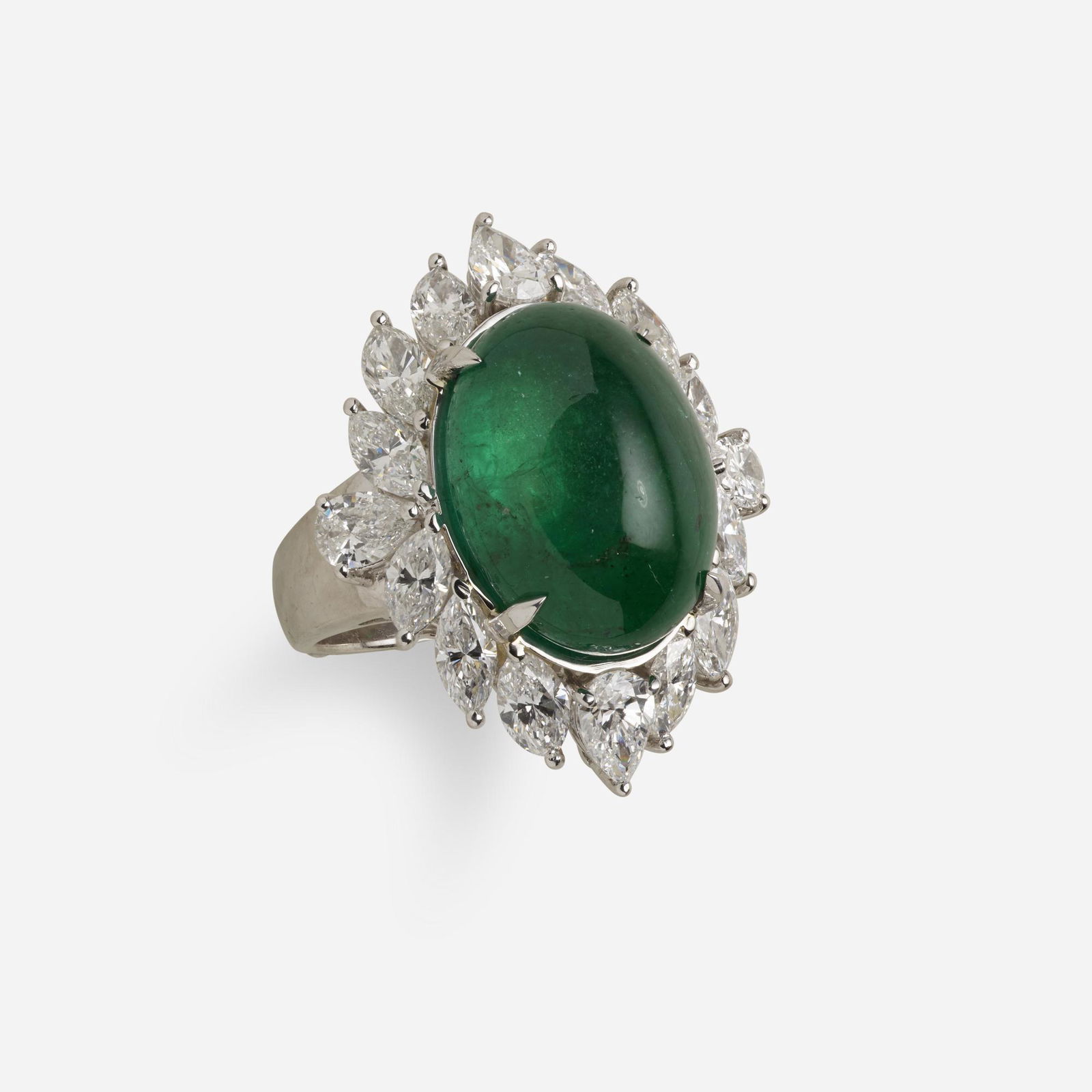 Diamond and cabochon emerald ring